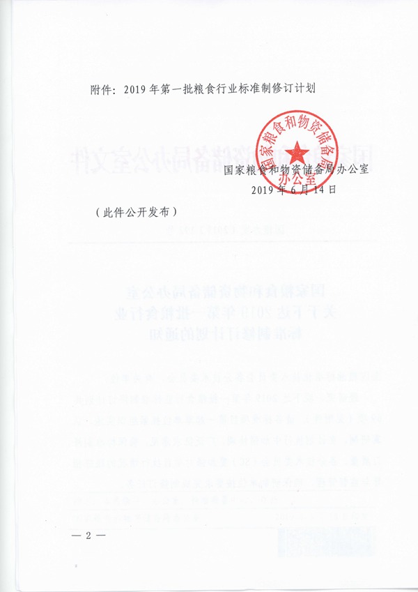 2019年第一批糧食行業(yè)標(biāo)準(zhǔn)制修訂計(jì)劃
