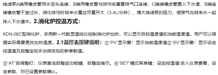 4.消化完成后,冷卻階段過程中,不能關(guān)閉水源,否則會有剩余的廢氣逸出。