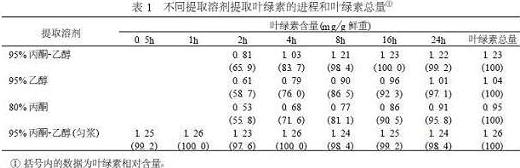 上圖是不同的葉綠素提取液在提取葉綠素時的進(jìn)度,可以看出,差別還是挺大的。大家可自己比較下。從圖中我們可以發(fā)現(xiàn),95% 丙酮2乙醇(勻漿)的提取效果最佳,因此,我們在進(jìn)行葉綠素含量測定的時候,可以考慮運用95% 丙酮2乙醇(勻漿)作為提取液。