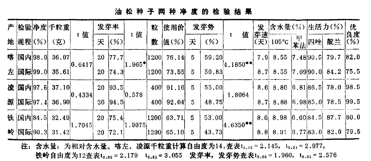 國際及國內(nèi)油松種子凈度的檢驗(yàn)參數(shù)差異