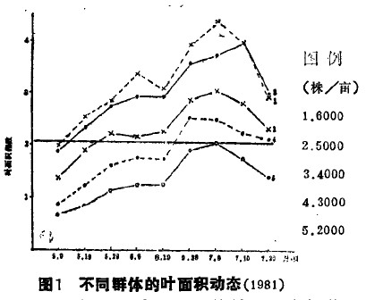 (一)不同密度的葉面積發(fā)展動態(tài)