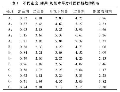 密度過大或過小對合理葉面積指數(shù)動態(tài)發(fā)展不利。
