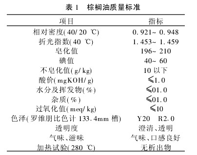 棕櫚油質(zhì)量標(biāo)準(zhǔn)見表1。