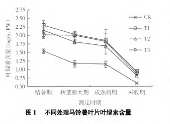 不同處理對馬鈴薯葉片葉綠素含量的影響