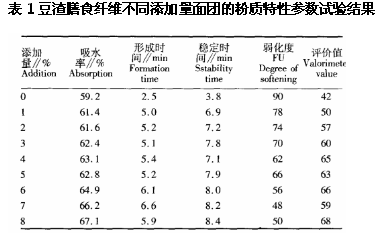 一、豆渣膳食纖維對(duì)面團(tuán)粉質(zhì)特性的影響