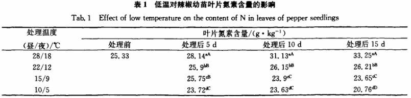 一、低溫對(duì)辣椒幼苗葉片氮含量的影響