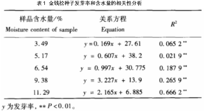 一、貯藏溫度和含水量對金錢松種子發(fā)芽率的影響