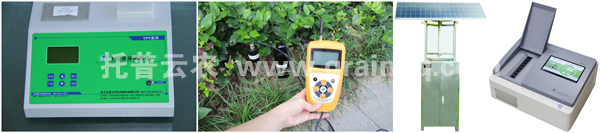 圖為:土壤養(yǎng)分速測儀、土壤水分測定儀、交直流兩用蟲情測報(bào)燈、農(nóng)藥殘留速測儀
