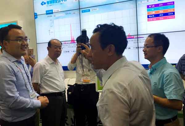 圖為:屈冬玉副部長(zhǎng)針對(duì)物聯(lián)網(wǎng)應(yīng)用進(jìn)行現(xiàn)場(chǎng)指導(dǎo)