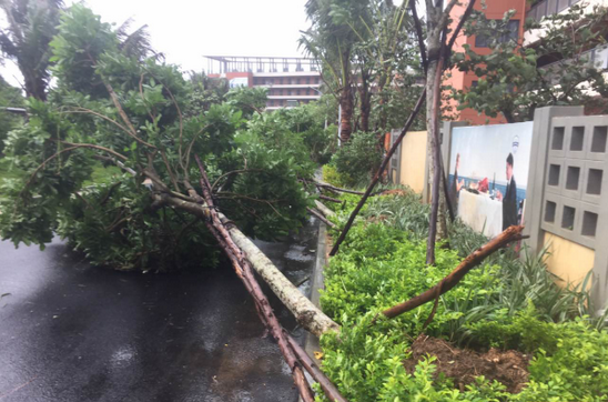 10月18日上午,海南陵水街頭的樹(shù)木被狂風(fēng)拔起。?谑忻窆﹫D