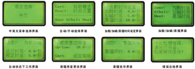 手動模式下:加硼,加堿 和蒸餾吸收三個過程可以單獨人工操作,體積,時間自行控制,滿足專業(yè)用戶需求。